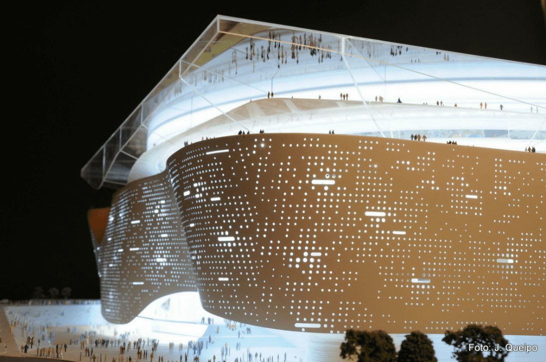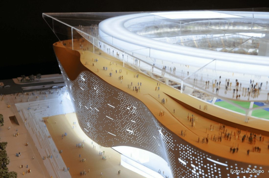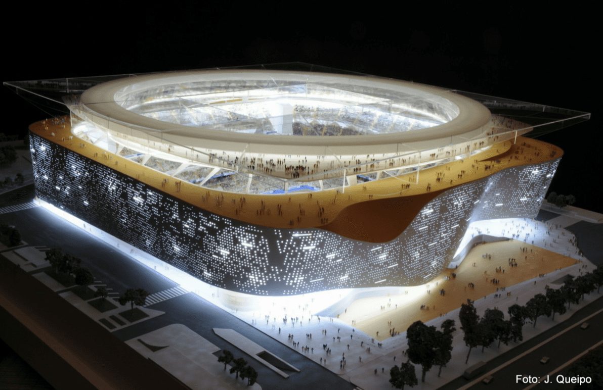 En exclusiva y gracias a @EstudioLamela os podemos mostrar cómo era el proyecto que NO ha resultado ganador y por el que tanto hemos apostado aquí. El tandem Populous-Lamela ha hecho un trabajo espectacular: Con un presupuesto de 318M€ Ellos los describen así: “Desde el comienzo de la primera fase del concurso, nuestra propuesta se ha apoyado en la comprensión de la importancia de crear un diseño icónico y una solución que genere nuevas corrientes de ingresos al club. El Real Madrid Club de Fútbol es el equipo de fútbol más emblemático del mundo y su estadio exige un diseño único y especial. Este diseño supera las expectativas del actual estadio creando un centro simbólico para la ciudad de Madrid y un núcleo cultural para sus residentes. Nuestra propuesta aporta vida al estadio Santiago Bernabéu los 365 días del año y le convierte en el corazón que impulsa fuerza global al Real Madrid Club de Fútbol.