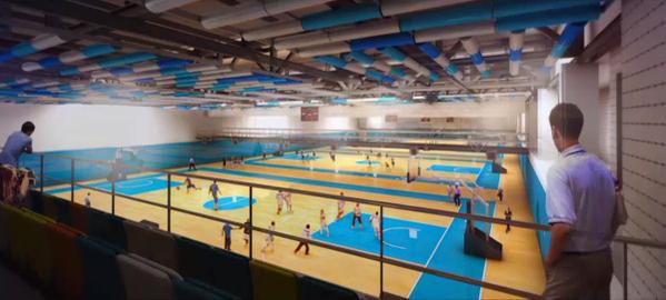 Este pabellón multiusos tiene una superficie de 8.255 m² distribuidos en cuatro pistas de baloncesto y todas las zonas de vestuarios, salas, despachos, etc… También permitirá la celebración de eventos con capacidad para 2.000 personas. En la planta baja del pabellón se han ubicado los vestuarios de jugadores y técnicos, un gran gimnasio, las salas de fisiotera pia con poza de crioterapia, las zonas de control médico, aulas de formación y sala de visionado y prensa.